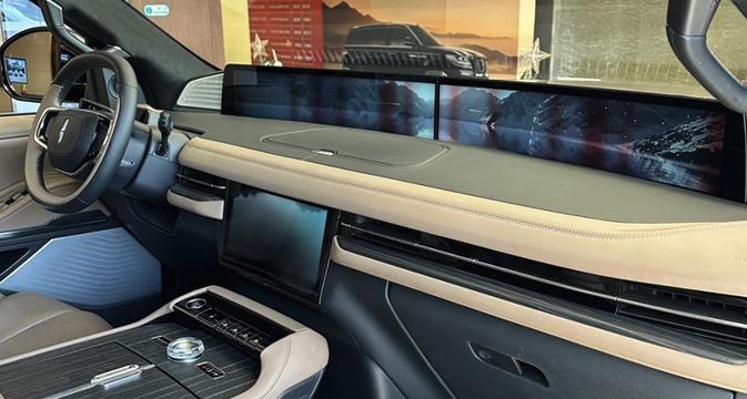 进入车内,最吸睛的莫过于那块48英寸的环抱式4K超高清巨屏,这块屏幕的尺寸甚至超过了很多家用电视,显示效果更是细腻无比。无论是导航、娱乐还是车辆信息显示,都能带来震撼的视觉体验。当然,除了这块“巨无霸”屏幕,全新林肯领航员的内饰也处处体现着豪华与科技的融合。苏格兰Bridge of Weir高级皮革包裹的座椅,触感柔软舒适,配合15种按摩模式,让你在旅途中也能享受到头等舱般的待遇。