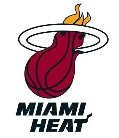 迈阿密热火队1988年加入联盟,当时的队徽是一颗穿过篮筐的燃烧的篮球,篮球尾部与火焰融为一体。篮球的颜色做了渐变处理以表现出火焰和高温的感觉。