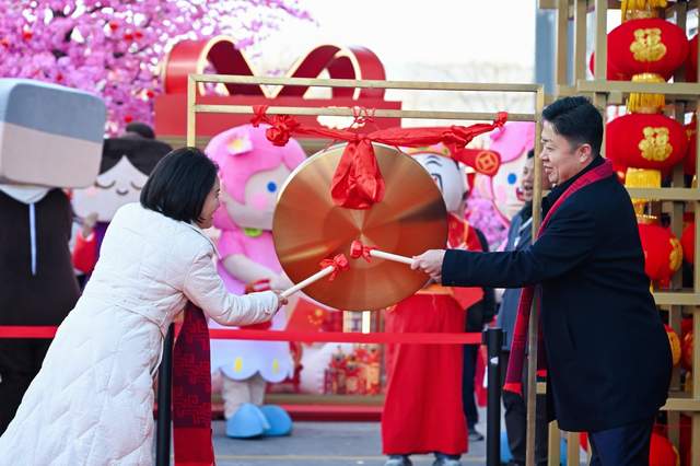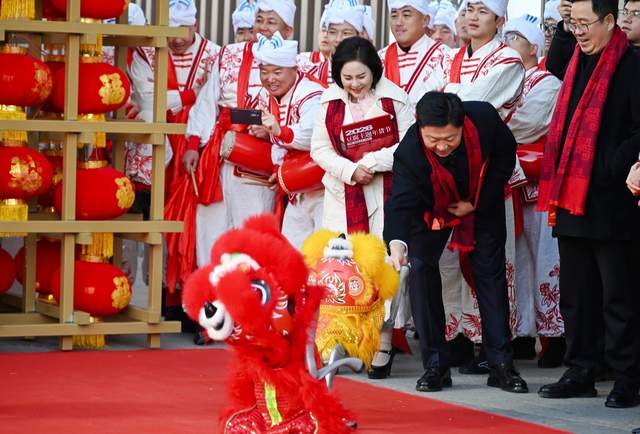 开幕式上,纪怀雄局长致辞表示,本次年货节是榆阳区推动非遗活化、促进农特产品产销的重要举措,通过“文商旅+助农+电商”模式,既丰富市民新春生活,也为榆阳好产品拓宽销路,助力消费提振与经济活力提升。随后,纪怀雄局长与王理英董事长共同敲响“豆腐敲福”祈福锣,寓意市集开市红火、产销两旺。