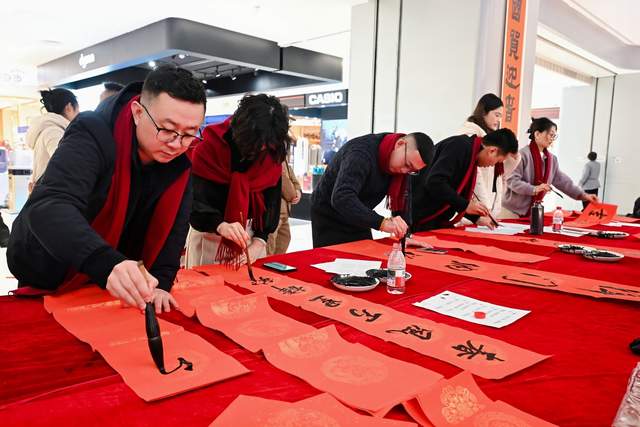 为放大活动效应,榆林市商务局同步发放百万消费券,多重优惠叠加激发消费潜力;新媒体达人与助农主播现场直播推介,线上线下联动形成购销两旺的火热势头。国贸中心一楼特设惠民专区,中书协会员、省书协书法家现场挥毫,千副春联免费赠予市民,笔墨间的新春祝福赢得广泛赞誉。