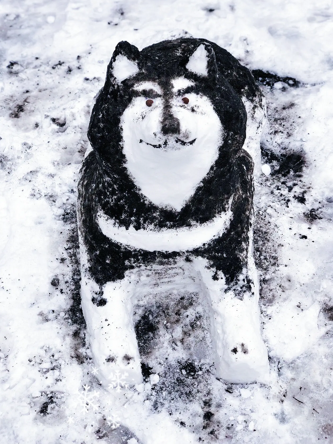 10.用雪做的哈士奇,这双呆萌的眼睛真是太传神了。