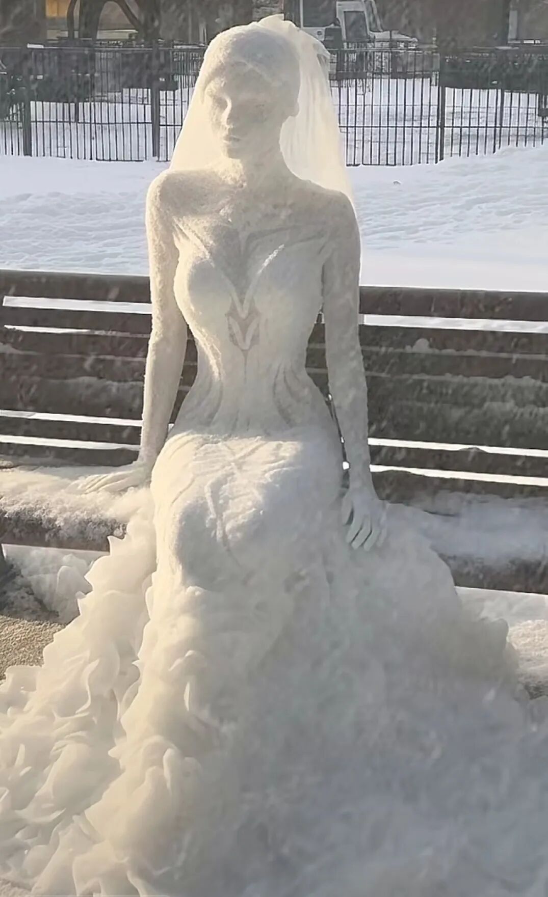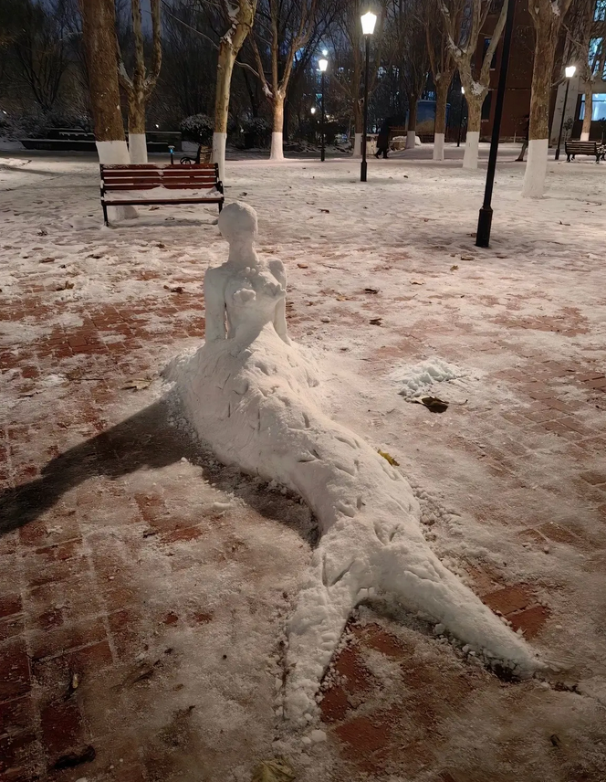 9.雪中的美人,这个雪人的侧身真的太美了。