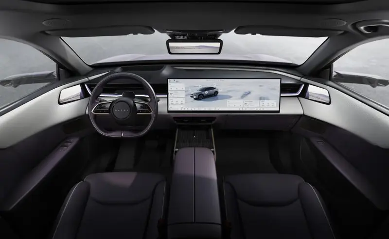座舱是用户与车辆情感连接的核心场景。在座舱设计上,EZ-60充分融入了科技感和悬浮感。首先,新车搭载了行业唯一超150英寸的6联科技大屏,大尺寸、多数量的屏幕为用户带来舒适、开阔、无死角的信息视野。其中,EZ-60首发同级最大、机身最薄、边框最窄的超画幅26.45英寸5K视网膜一体式大屏,它拥有同级最薄的9.5mm机身,同级最窄的6.4mm边框。灰态亮度小于0.5尼特,让画面更立体,观影沉浸感更强。32:9相当于两个16:9的画面,可以全面适配视频资源的播放要求。自适应调光技术,能根据环境光动态调节色温与亮度,做到烈日下不反光,隧道内不刺眼。