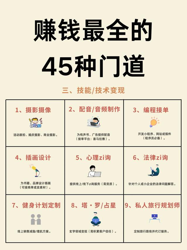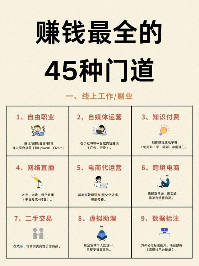 赚钱最全的45种方式