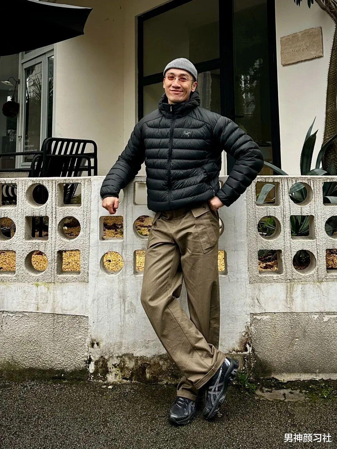 这种穿法对身材包容度极高,重点在于材质的区分。卫衣的软、羽绒服的挺、西裤的垂坠,即使全身同色,也能穿出丰富的视觉层次。