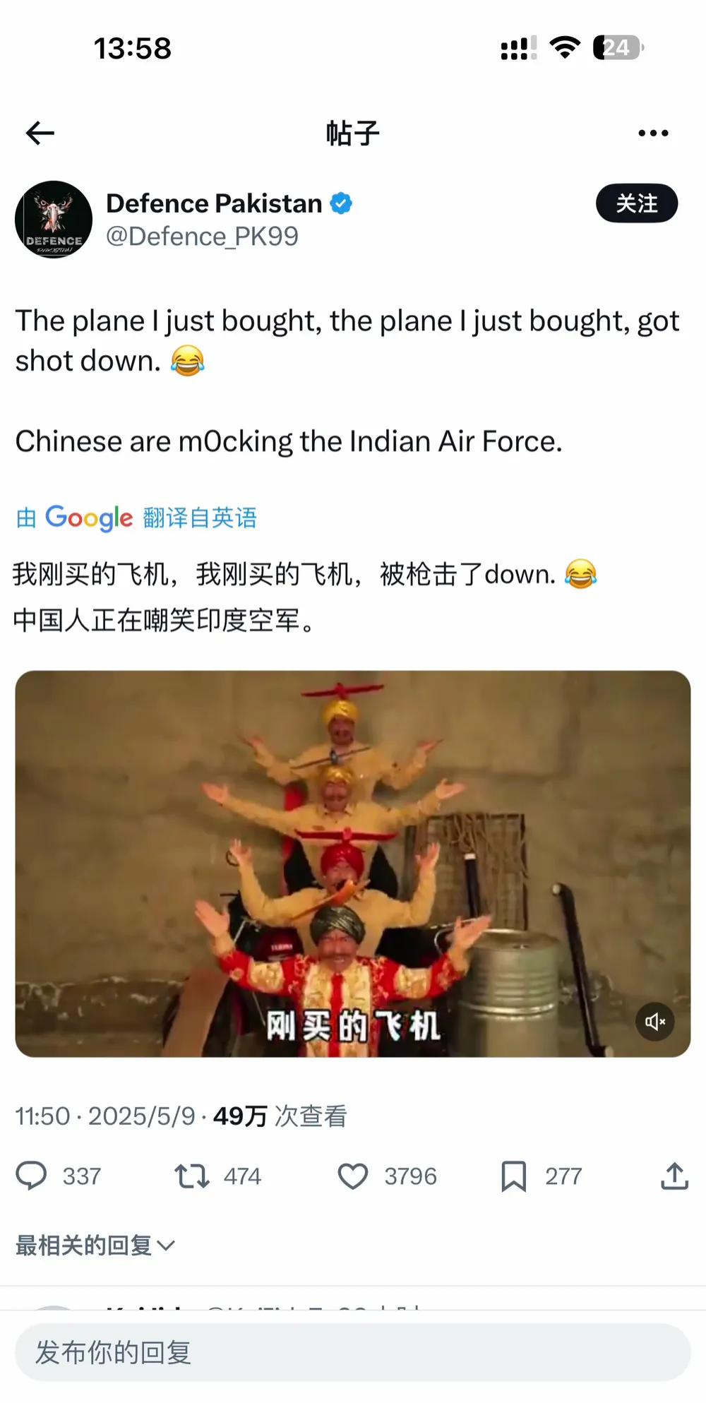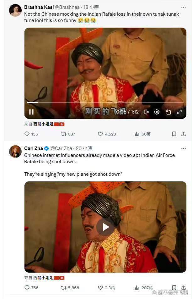 扎心的是,歌词里嘲讽的“刚买的飞机”,指的是印度刚花88亿美元买的法国阵风战机,结果在印巴冲突中真被击落了……