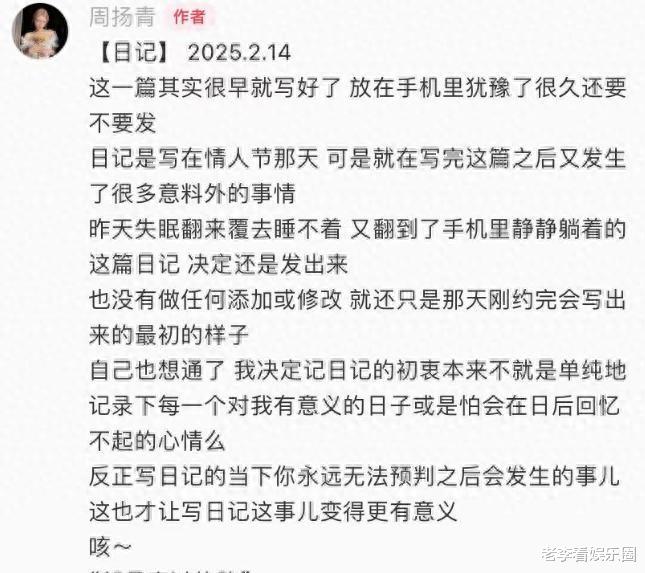总之,周扬青这次的恋情,充满了未知和可能性。六个月的谨慎试探,也让这段感情多了几分神秘感。