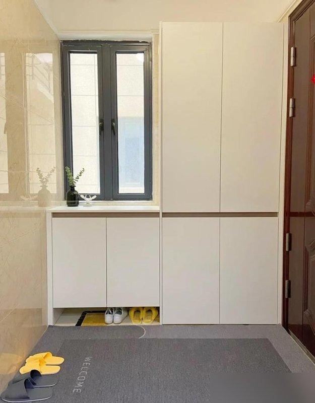 配色也绝,柜门和入户门同灰度,像给墙面打了一层柔焦滤镜。