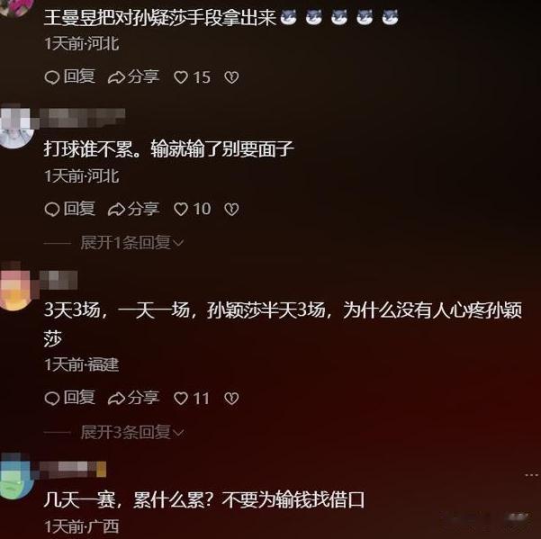 一部分球迷把目光放在了比赛本身,格外理解和认可王曼昱的坚持。