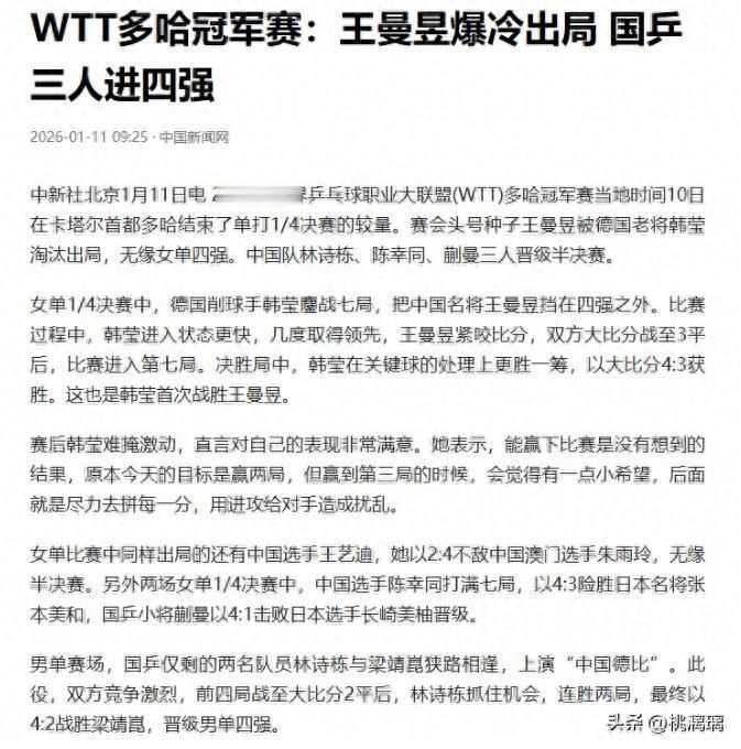 01这场爆冷的比赛,反差大到让人印象深刻,足以成为近期乒坛里让人津津乐道的一战。