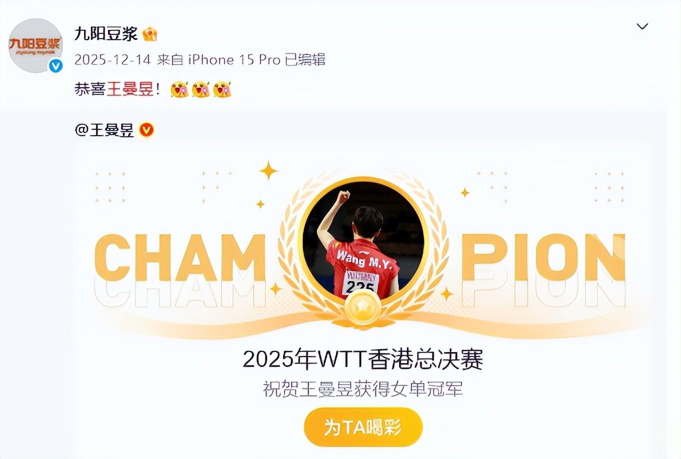 其实九阳豆浆并不是王曼昱商业合作里的新伙伴,早在2025年9月,双方就已经正式官宣了合作关系。