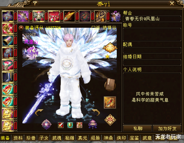 乔yi是2025年争霸赛冠军战队的主要战力,也是今年刚刚转入【凤凰山】服务器的顶级大佬号,目前身配8件重楼,集齐全套重楼部件: