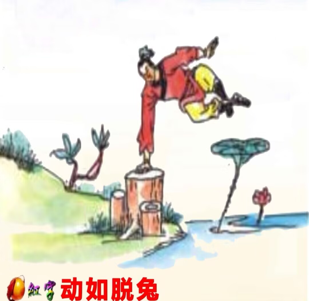 典故:古代用兵讲究静动结合——未战时如处女般沉静,使敌人放松戒备;一旦战机成熟,便如脱兔般迅猛出击,令敌人猝不及防。兔之脱网,四足腾空,瞬息远去,正是速度的最佳写照。