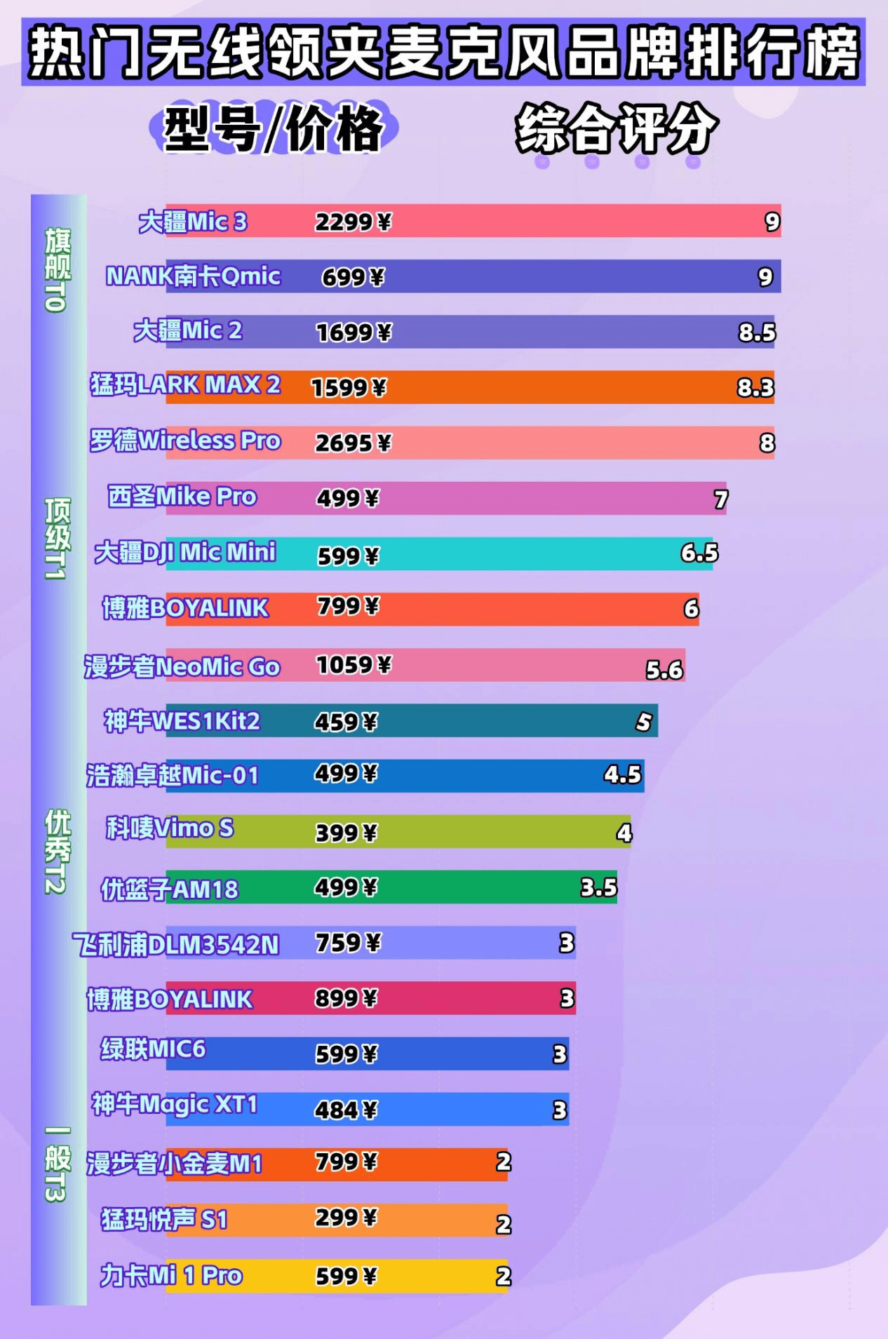 下面我给大家整理了几款我自己用过的各方面指数都比较不错的领夹麦来供大家参考: