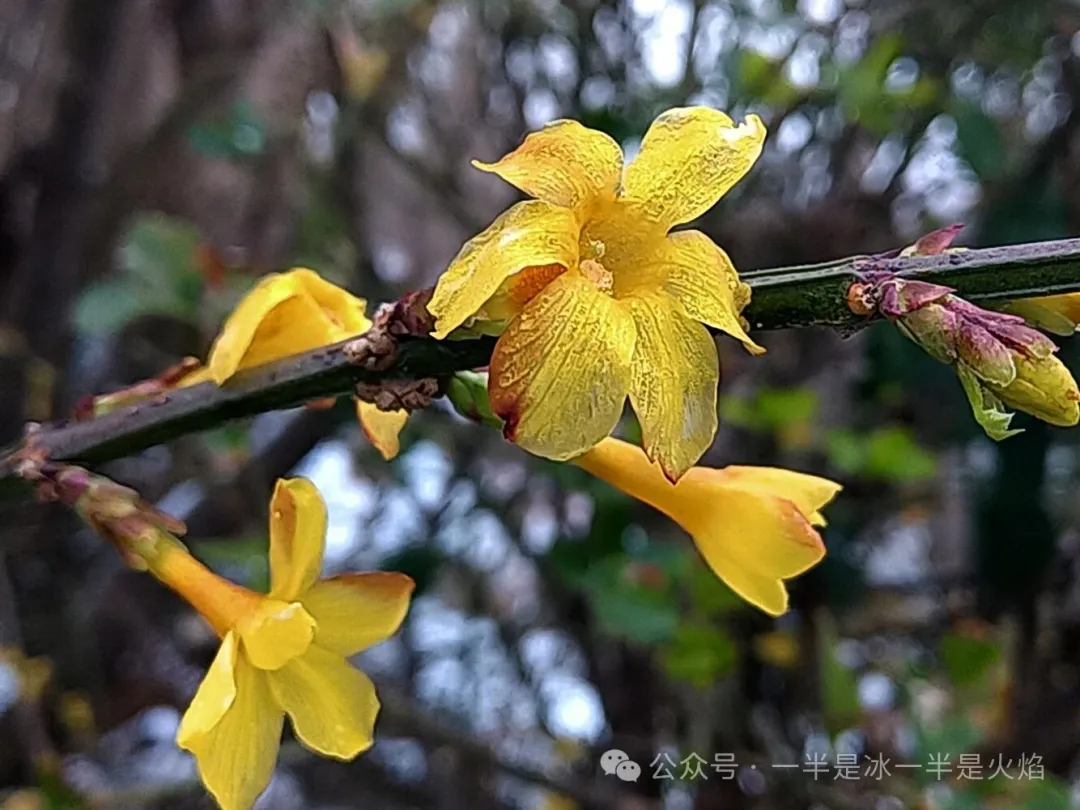 经过街心公园,迎春花散漫开在一隅,鲜亮,明艳,耀眼。