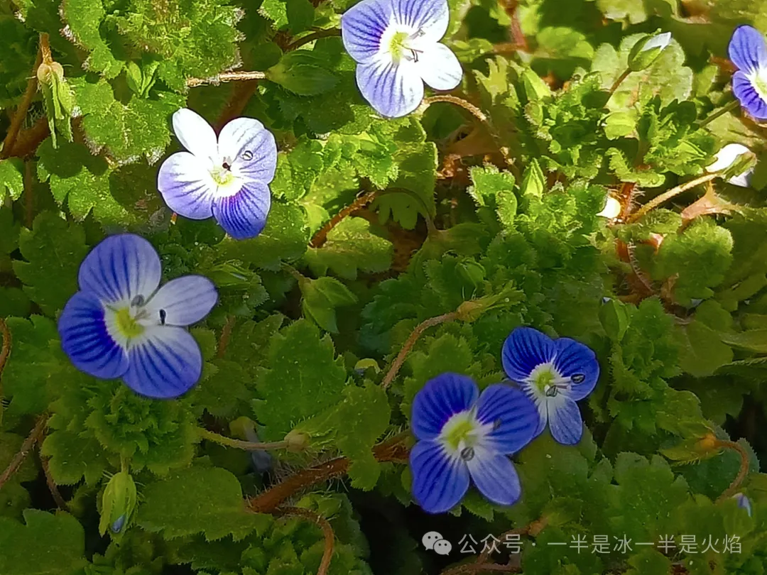 婆婆纳是野花,一长就一片,小小的,蓝莹莹的花,成群结队地开,开出一片浩瀚。