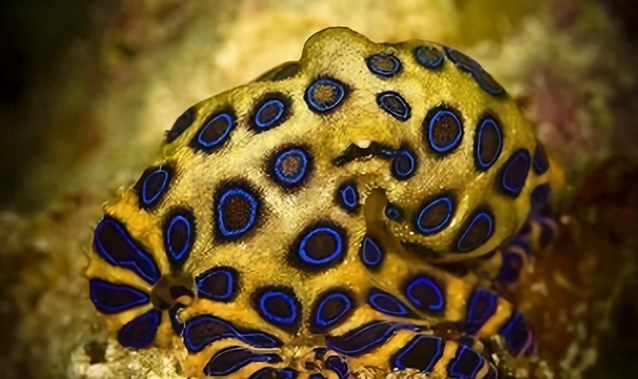 蓝环章鱼并不是因为它的美丽而闻名的,而是因为它身上携带的剧毒。蓝环章鱼的毒液中含有一种叫做蓝环酸的神经毒素,它是一种极其强效的毒物,可以导致猝死。