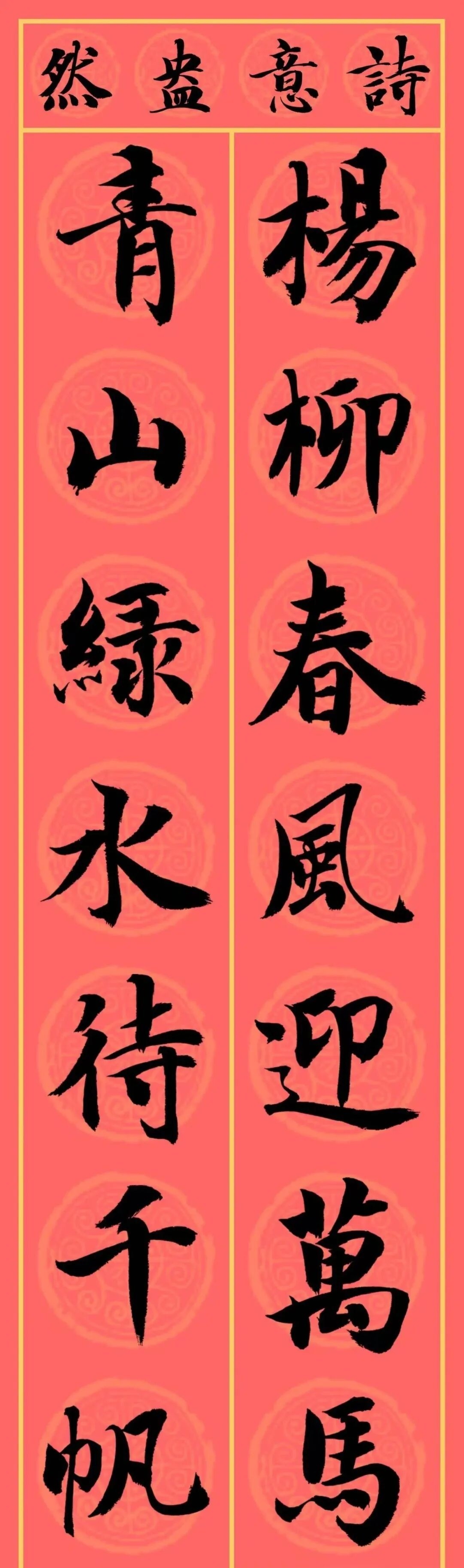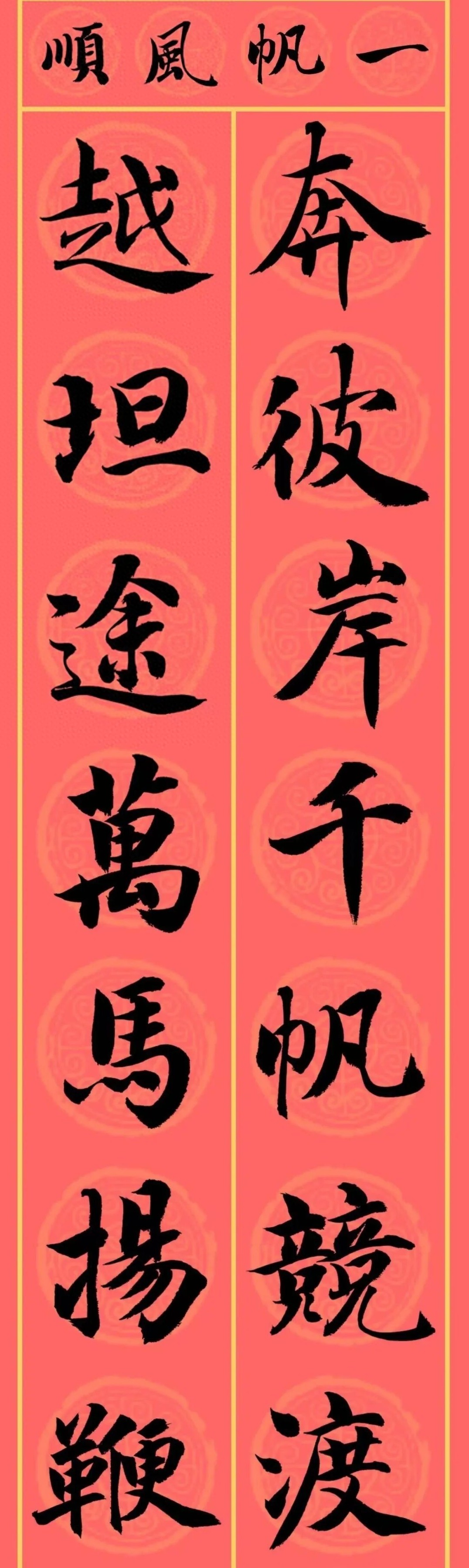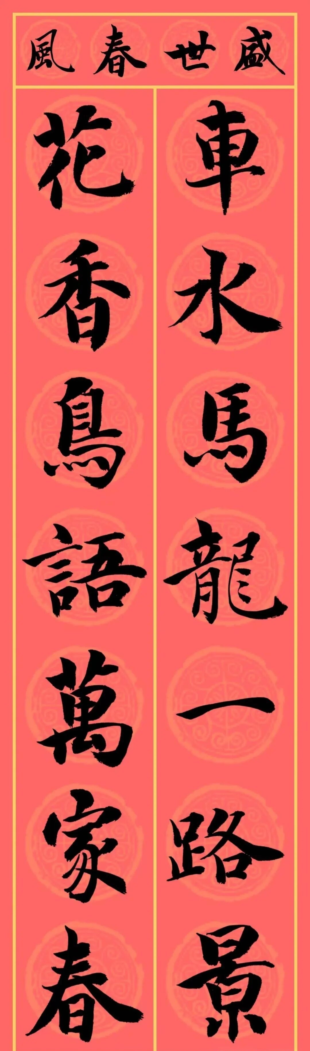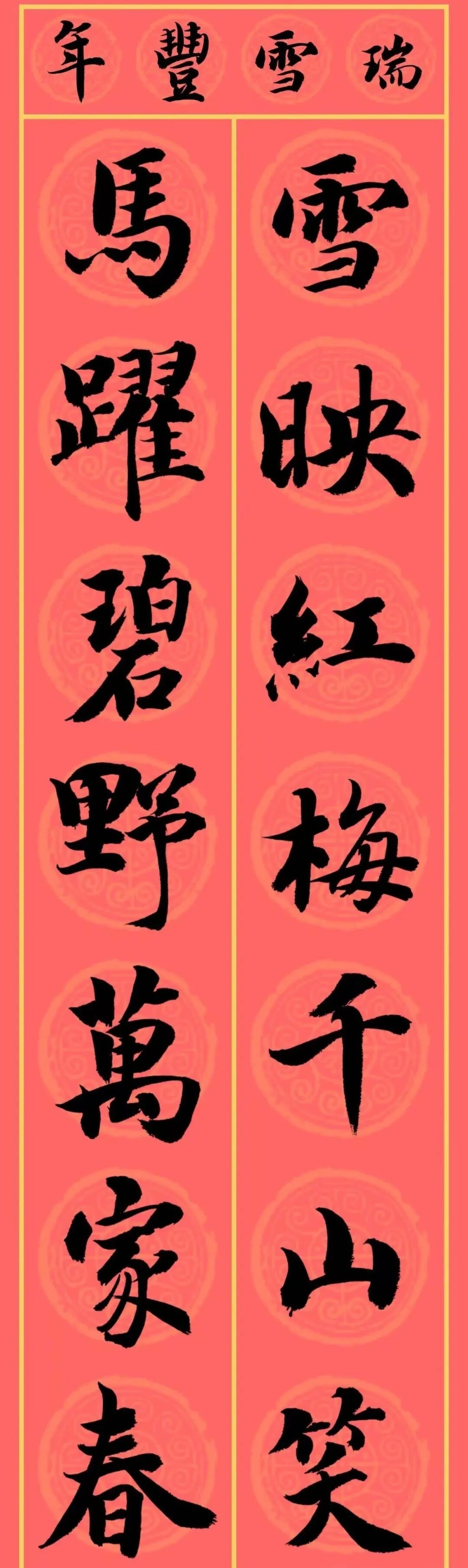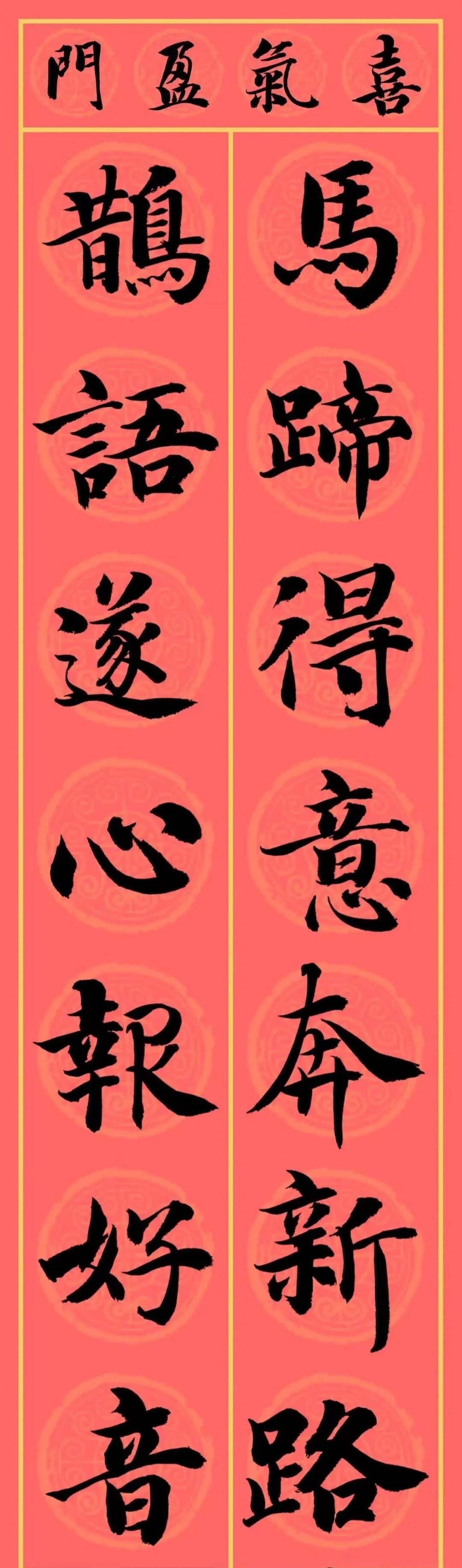 智永,南朝陈隋间书僧,王羲之七世孙,其《真草千字文》为楷书典范,笔清骨劲,气格高古。今以智永楷法集字,成2026马年新春对联,字字法度森然,又寓吉庆,可赏可贴,一览晋唐遗风。