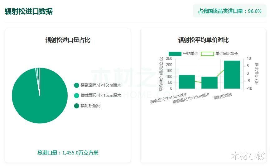 辐射松锯材进口21.97万立方米,同比增长25.5%,平均进口单价达到234.9美元/立方米,同比增长7.8%。