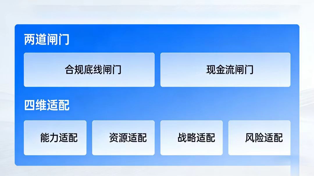 一是硬性要求:不是“我想做”“我敢做”的主观意愿,而是合规、现金流、能力、资源这类不可妥协的客观条件;