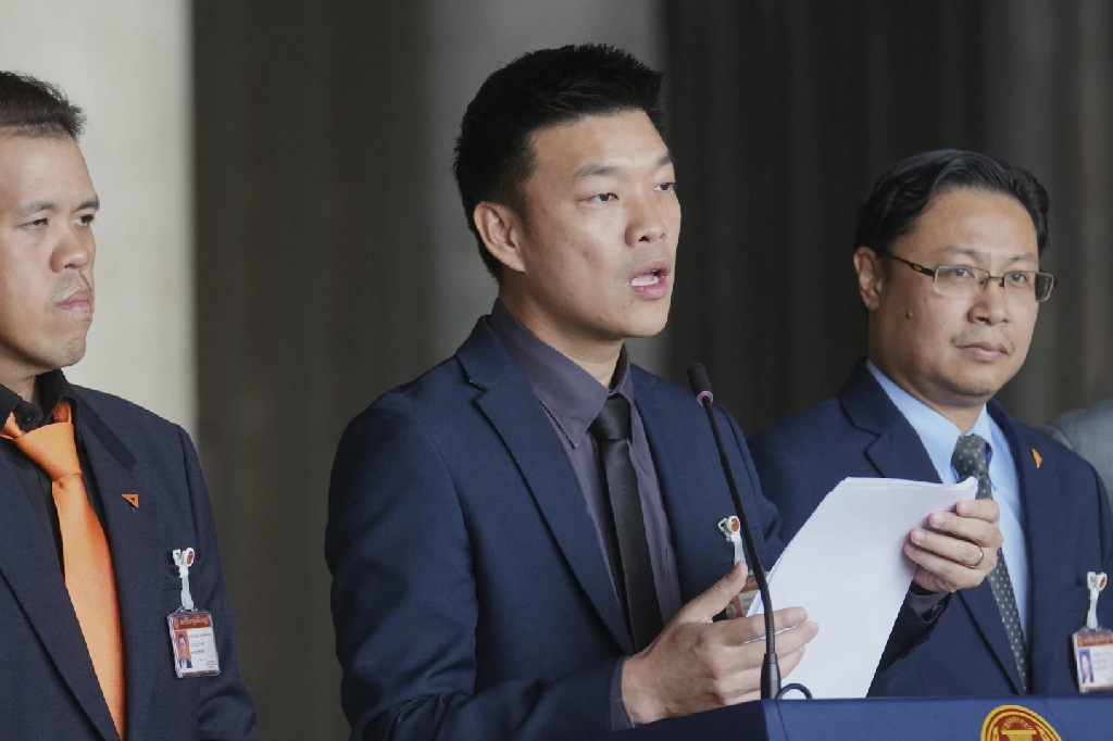 人民党领袖纳塔蓬·能班亚武(汉名林廷)发言