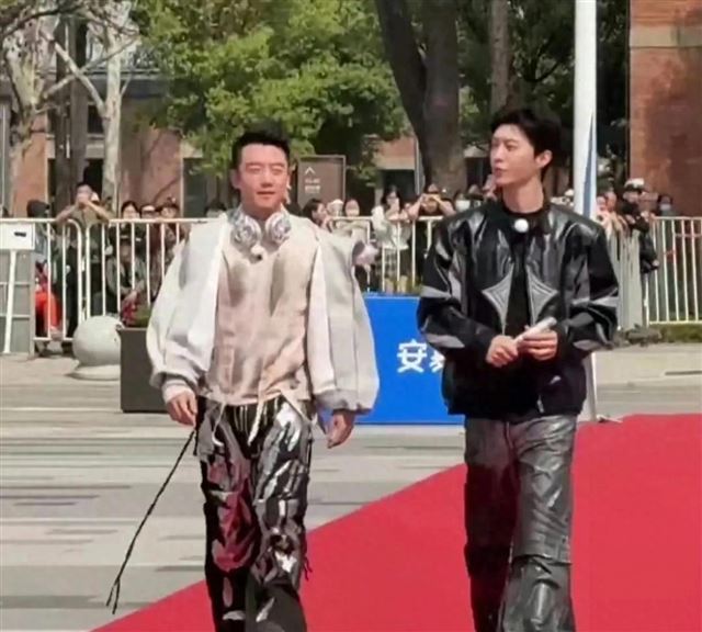 沙溢则延续“喜剧人”路线,手持自拍杆穿梭于媒体区,实时直播红毯花絮,甚至临时客串记者采访其他嘉宾,将即兴互动玩出新高度。