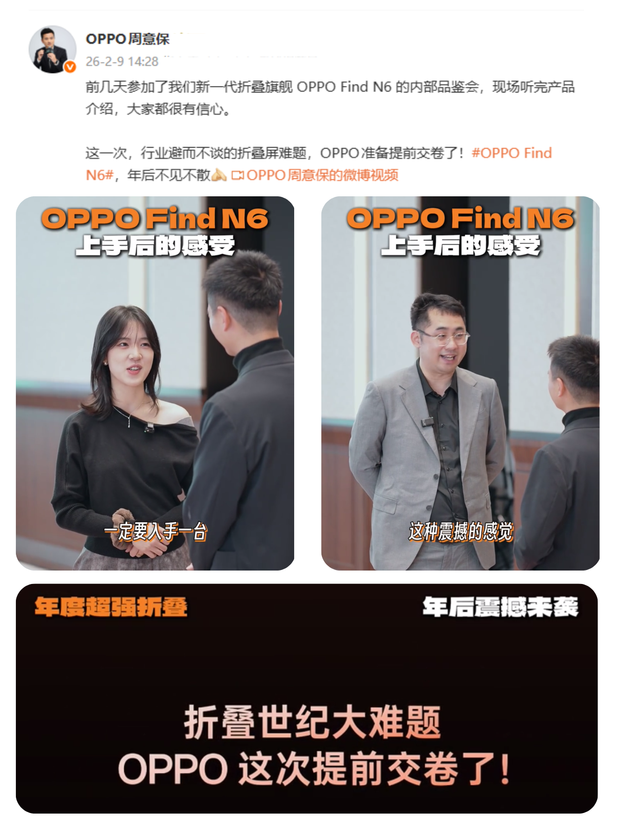 -另外苹果折叠主打的无折痕卖点可能会由Find N6率先用上,周意保透露:这一次,行业避而不谈的折叠屏难题,OPPO准备提前交卷了!更重要的是OPPO Find N6 3月就发布了,早上苹果折叠半年时间用上超轻微折痕,而且还有不少黑科技加持。