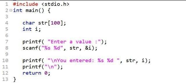 在这里,应当指出的是,scanf() 期待输入的格式与您给出的 %s 和 %d 相同,这意味着您必须提供有效的输入,比如 "string integer",如果您提供的是 "string string" 或 "integer integer",它会被认为是错误的输入。另外,在读取字符串时,只要遇到一个空格,scanf() 就会停止读取,所以 "this is test" 对 scanf() 来说是三个字符串。