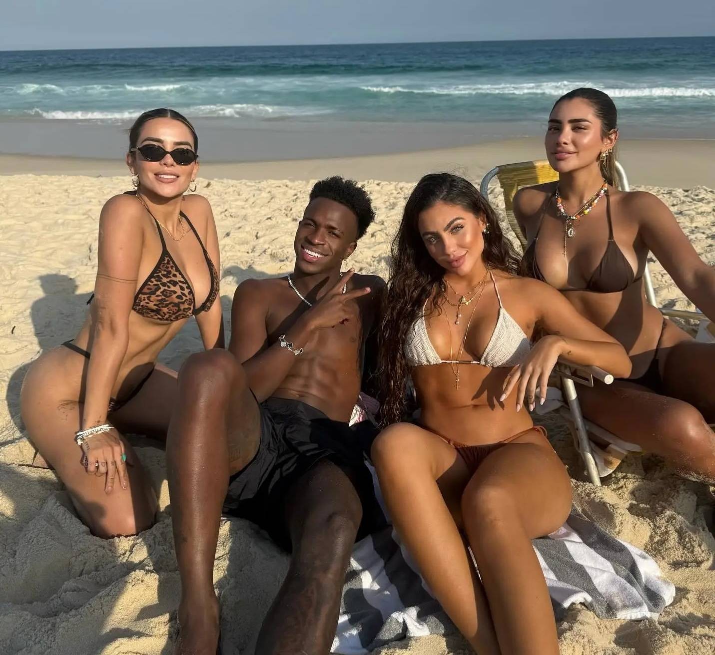 虽然为期两天的生日庆祝活动已然结束,但维尼修斯的庆祝热潮似乎还在继续。最近,女网络红人Dania Mendez在社交媒体上分享了关于这位巴西球星的最新动态。照片中,维尼修斯正坐在风景如画的里约热内卢海滩上,身边环绕着三位身材曼妙的女伴,每个人都散发着独特的魅力与风情。维尼修斯与她们亲密的互动,显得格外开心,他的欢笑声和悠闲的姿态昭示着这位年轻明星已经沉浸在了令人陶醉的假期氛围中。