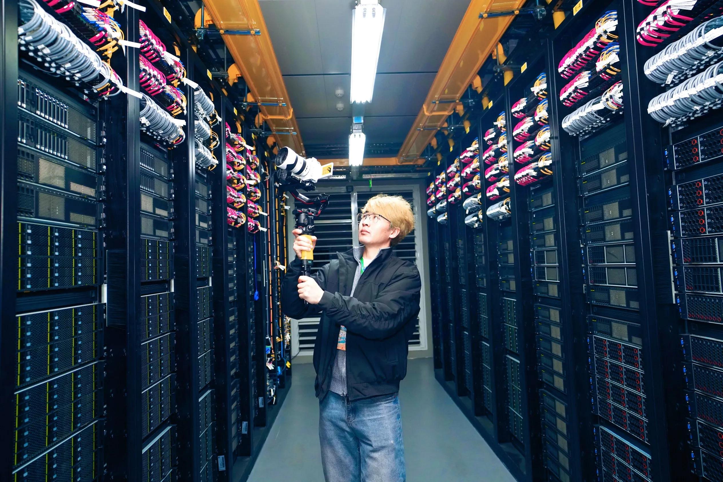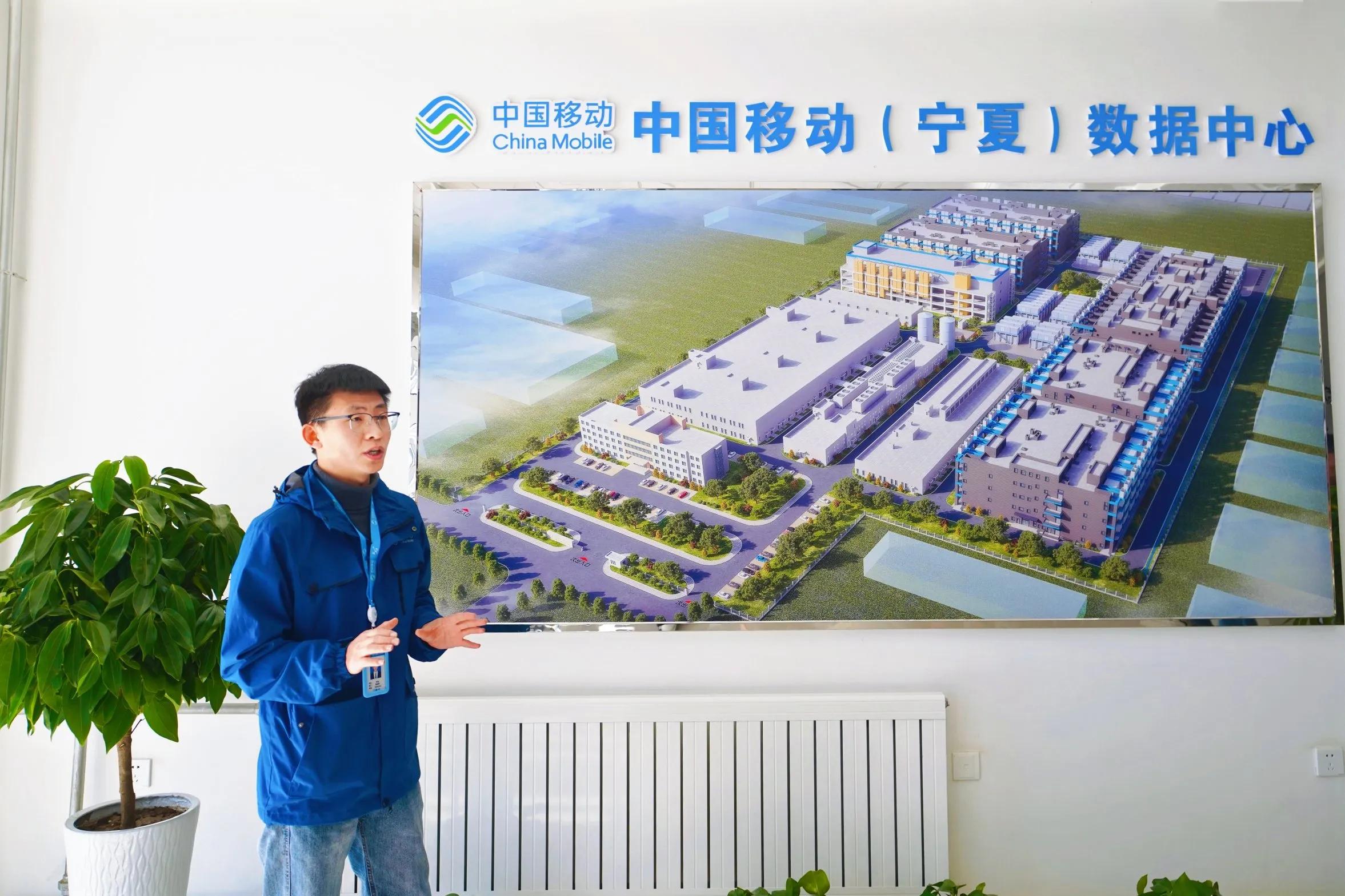 走进中国移动宁夏中卫数据中心可以看到,占地200亩的A区已经满载运行,同样占地200亩的B区工程正在加足马力抢工期、保交付。作为宁夏首个大型绿色数据中心,这里累计投资超过100亿元,已建成9栋机房,投产机架7.65万架,机架销售率已达100%。这里承载服务了美团、阿里、腾讯等多家互联网头部企业,每天处理的数据量相当于180万台高性能计算机同时工作,能够承接近千亿参数的模型训练。