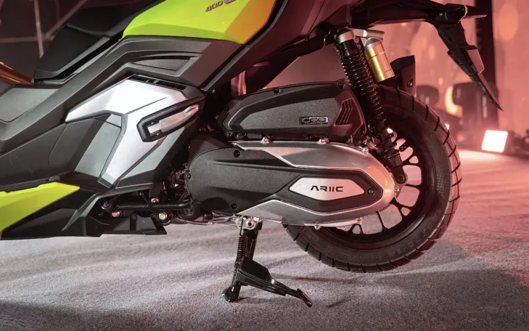 动力方面戈壁400GS搭载一台单缸四气门引擎,实际排量369cc,具备25kW/7,500rpm的最大功率,38.3Nm/5,500rpm的最大扭矩,最大马力来到34匹。这台引擎就是逆研本田NSS上的单缸水冷四气门引擎,在此前318 GT上拥有非常不错的震动抑制表现。总体来说,这台戈壁400GS可以理解成与本田ADV350同等定位,基本就是风格上的跨界而已。