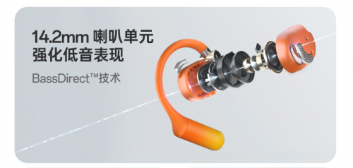 很多人对开放式耳机的第一印象就是“听个响”,但其实现在的好产品在音质上已经能打。比如搭载了16×10mm大尺寸复合动圈单元、三腔体结构(TriAcoustic)这类配置的耳机,在三频表现上会明显更平衡: