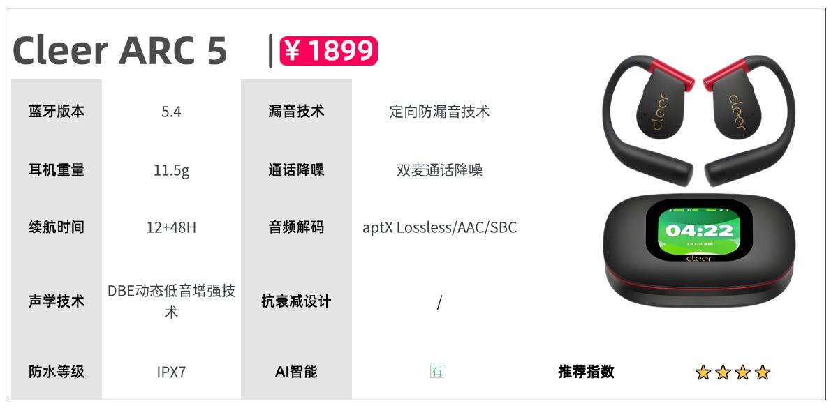 推荐二:Cleer ARC 5(1899元)