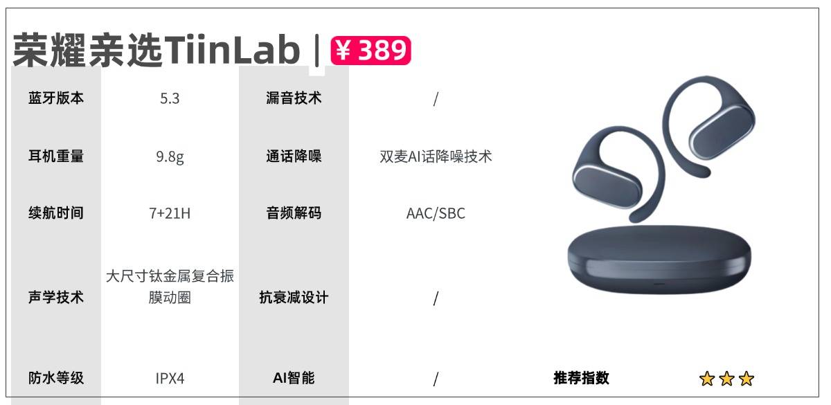 推荐八:荣耀亲选TiinLab(389元)