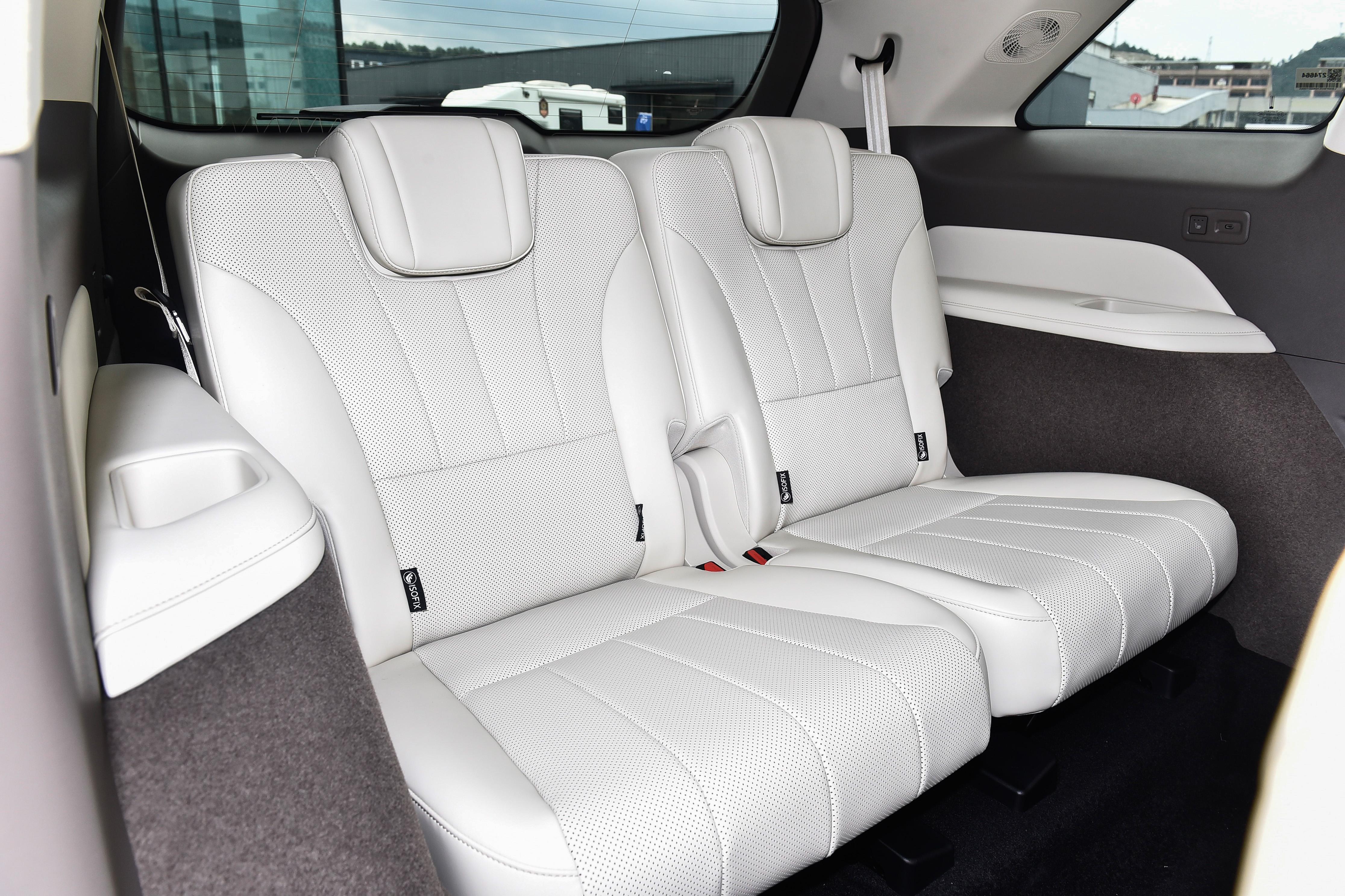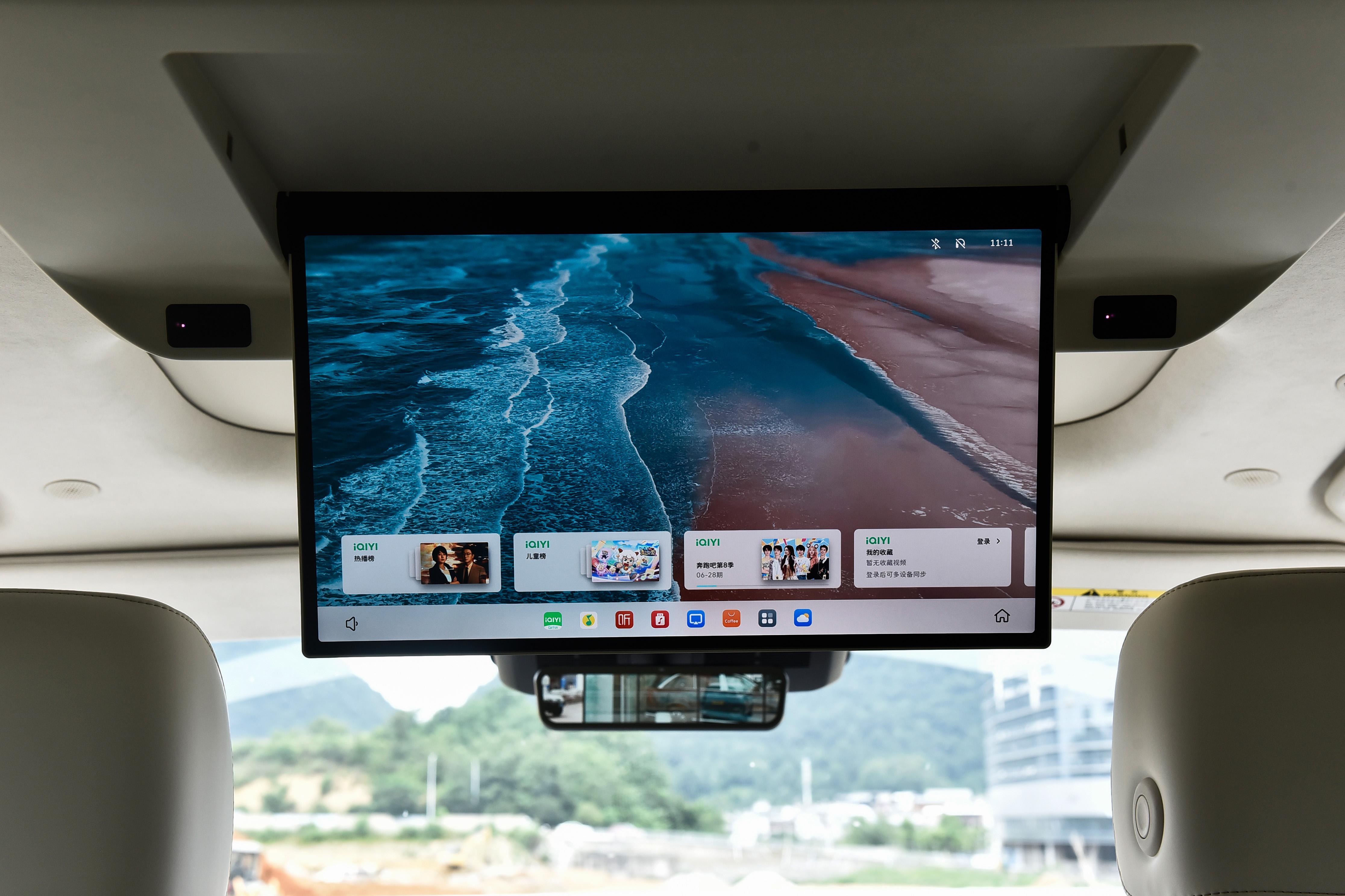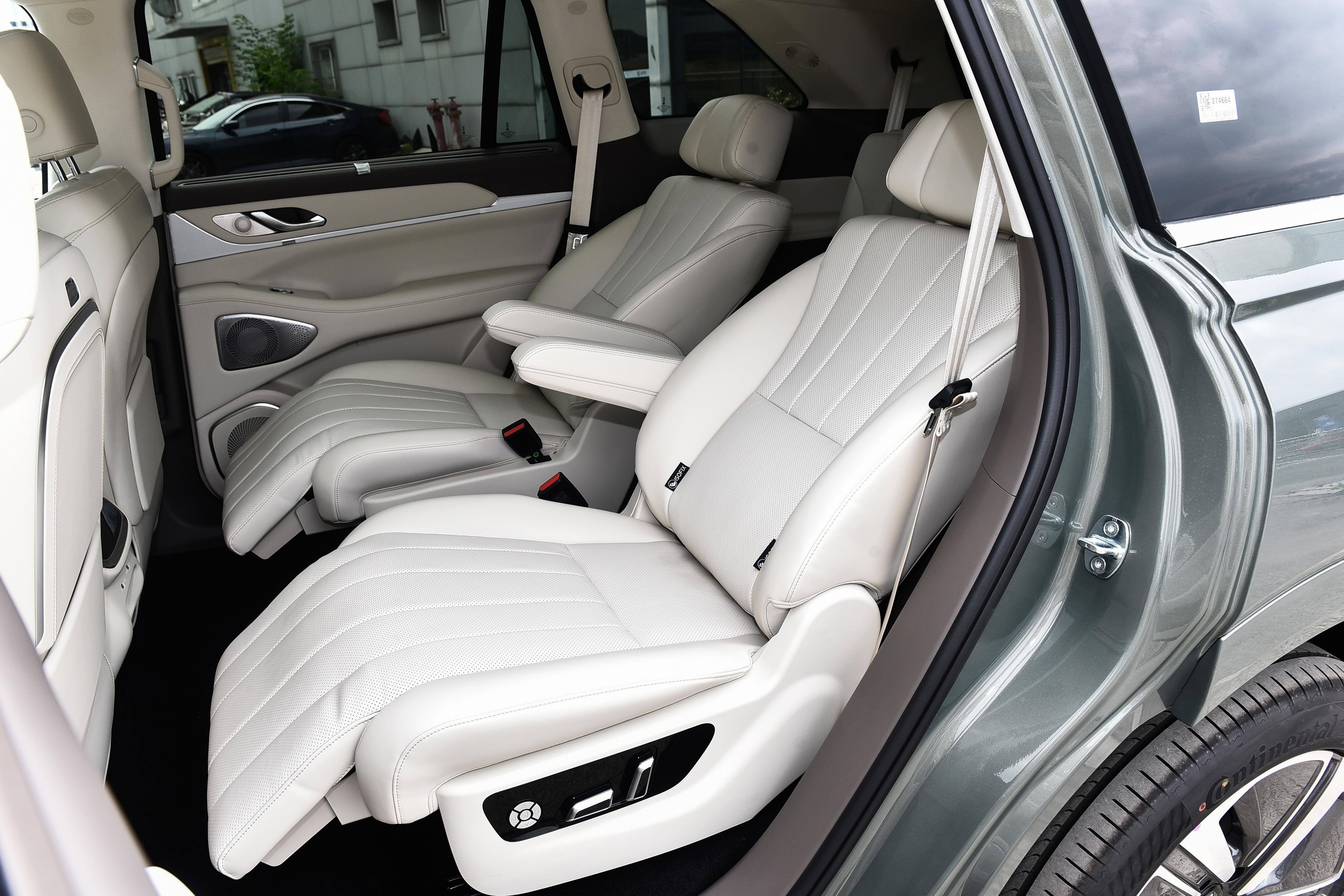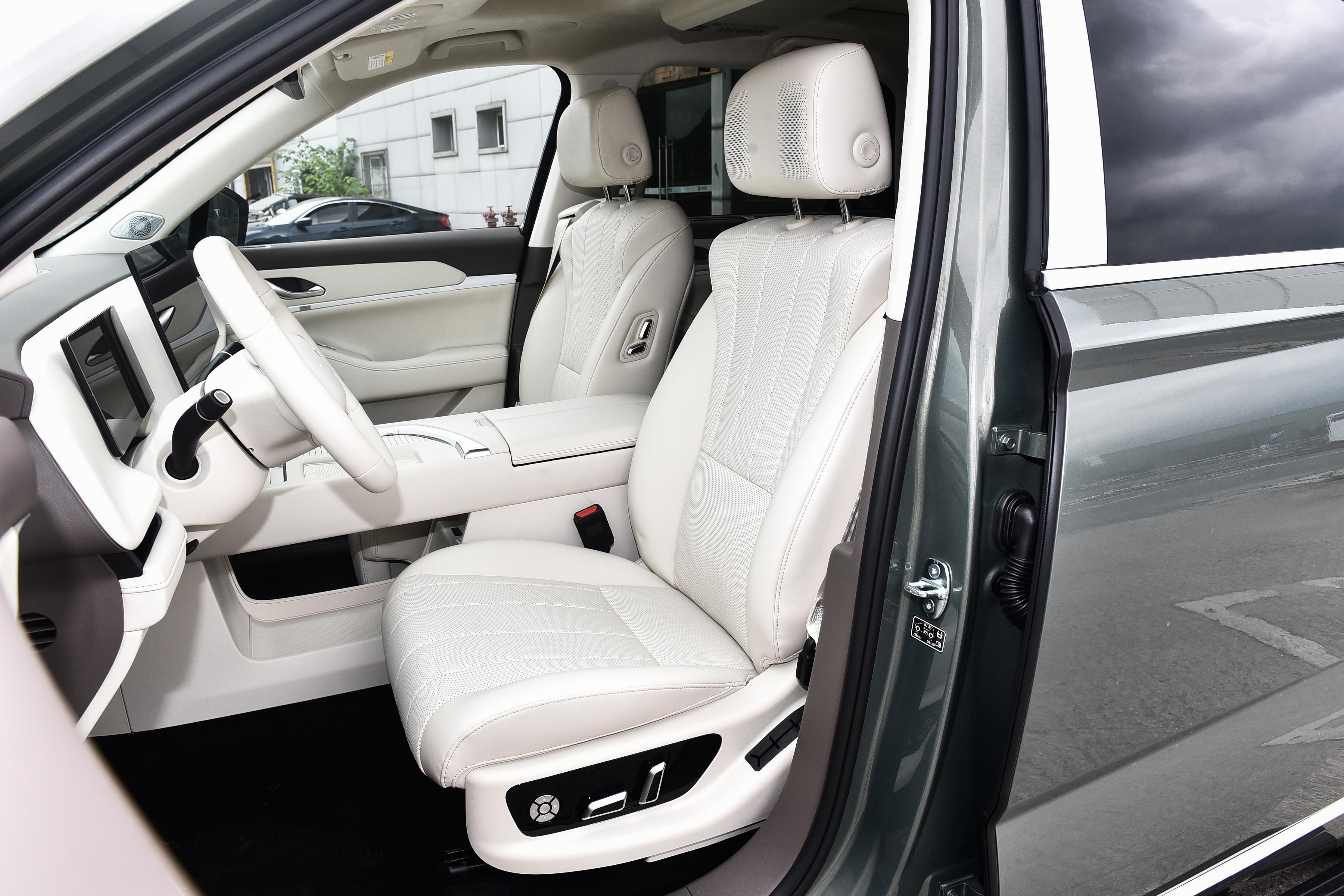 座椅采用了2+2+2的布局,前排座椅自然不必多说,无论是头部空间还是腿部空间都相当充裕。第二排则采用了独立座椅的设计,配备了头枕、腿托和内侧扶手,支持三档可调座椅加热和通风以及按摩功能。坐上去之后,仿佛置身于家中的大沙发,具有较高的乘坐舒适性。