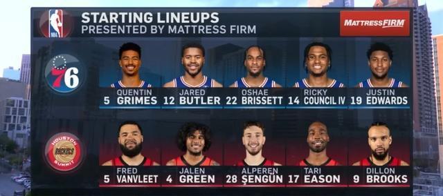 76人今缺席11人,此战重在锻炼新人。新人身体素质佳,运动能力强,打法灵活。上半场他们轮流投中15记三分,成功击溃火箭防守。