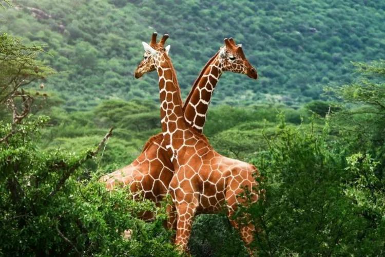 身高对长颈鹿求偶也很重要,雄性长颈鹿在求偶时,通常会激烈甩动脖子来进行战斗,所以脖子越长、身材越高,就越容易战胜对手。