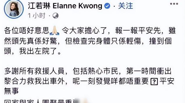 他在社交媒体上发布了一条动态,向所有关心江若琳的人报平安,并感谢所有现场施以援手的好心人。