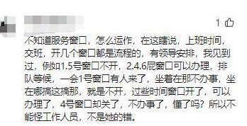 突然,他注意到一个收费窗口前面挂着个大牌子,上面写着“暂停服务”。肖先生刚开始以为工作人员是因为有紧急情况在处理,但他凑近一看,才发现让人愤怒的一幕:窗口里,一个女工作人员正坐在椅子上,眼睛盯着手机,手指不停地在屏幕上滑动,完全没有注意到外面等着的患者们。肖先生心里的怒火一下子冒了出来,四周的患者也开始小声抱怨了起来: