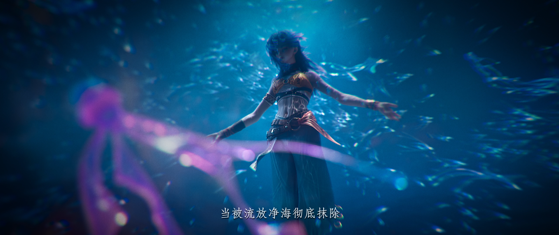 《凡应》不仅追求世界观的宏大,更在角色塑造上精益求精。主创团队通过风格化设计与高精度技术,赋予角色“人感”——让观众真正代入净海世界。例如PV中:瞳孔与睫毛的“真”细节,模拟真实光线折射,让眼神更具情感张力;皮肤材质分层,呈现肌肤的细腻质感,使之一颦一笑都更接近“真人”。艺画开天联合创始人兼《凡应》美术总监陈威表示:“希望观众能够更好的带入到我们的净海世界中去,好奇这个世界中人们如何生活,在经历着什么。”