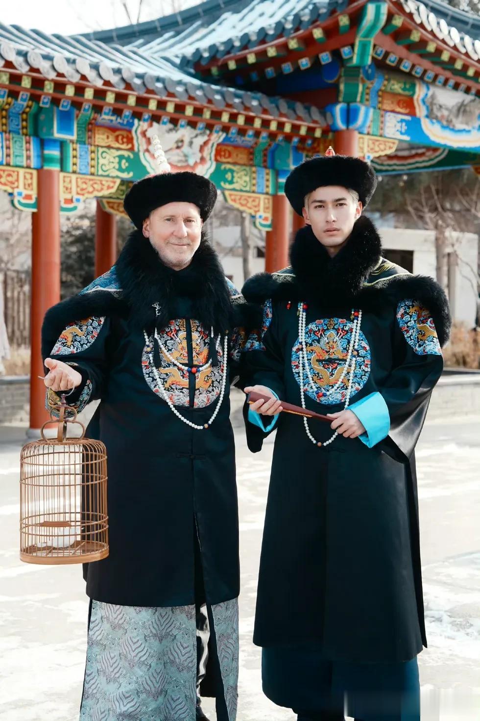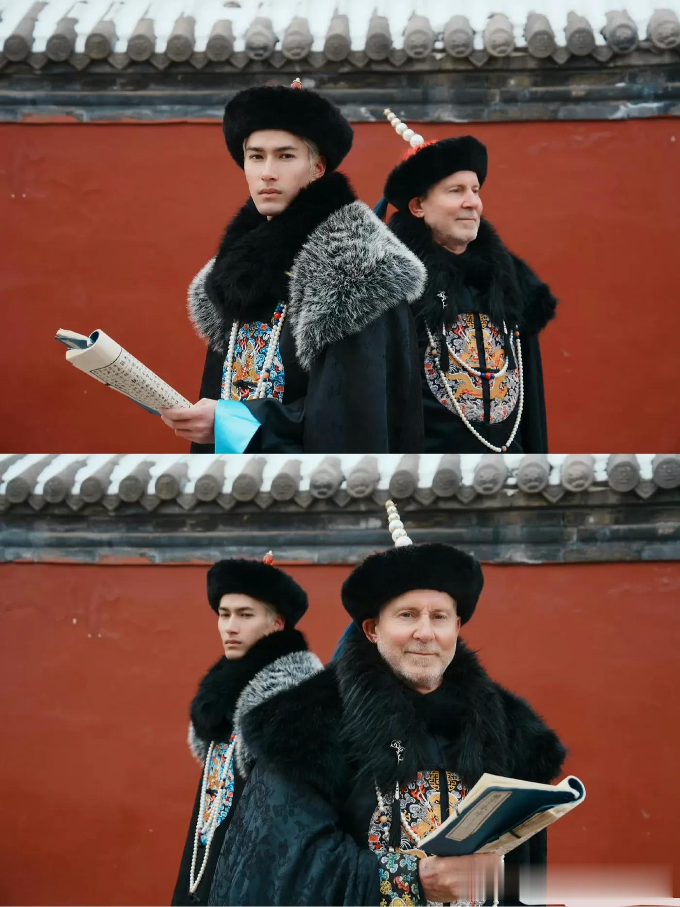 尽管被冻得不轻,但是,很显然这俩老外体验了一次古装,非常尽兴。