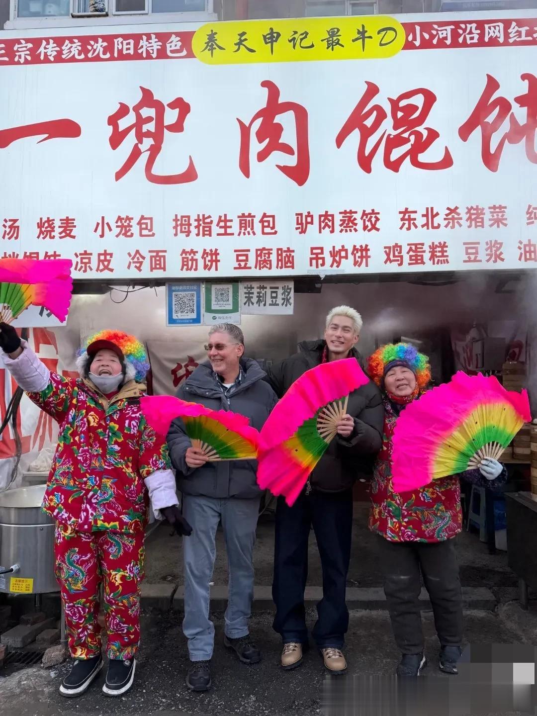 他们俩吃了血肠、肉蛋堡、粘豆包等当地传统美食,还跟着当地穿着大花棉袄的老板娘,学会了:“宝贝回家吃饭啦!”这句吆喝声。