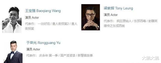 男性演员阵容强大,包括谢霆锋、于适、此沙、王宝强、梁家辉、于荣光、刘耀文等。