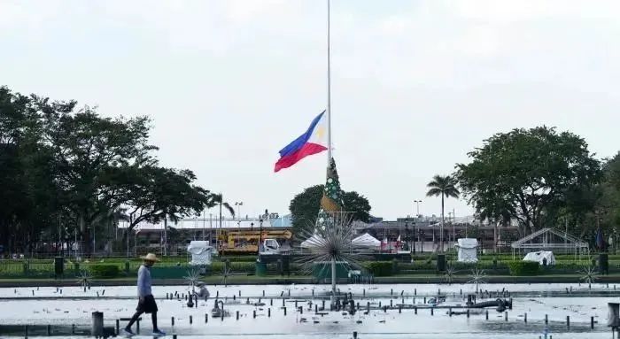 为遇难者默哀。“菲律宾频繁遭受台风侵袭,