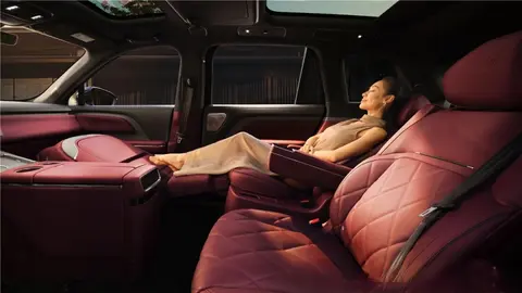 - 舒适性配置拉满:全系标配座椅通风/加热/按摩功能,前排座椅支持16向电动调节,后排配备航空级头枕与腿托,长途乘坐不易疲劳;车内搭载主动降噪系统,配合双层夹胶玻璃,高速行驶时车内噪音仅58dB,静谧性媲美百万级豪车。
