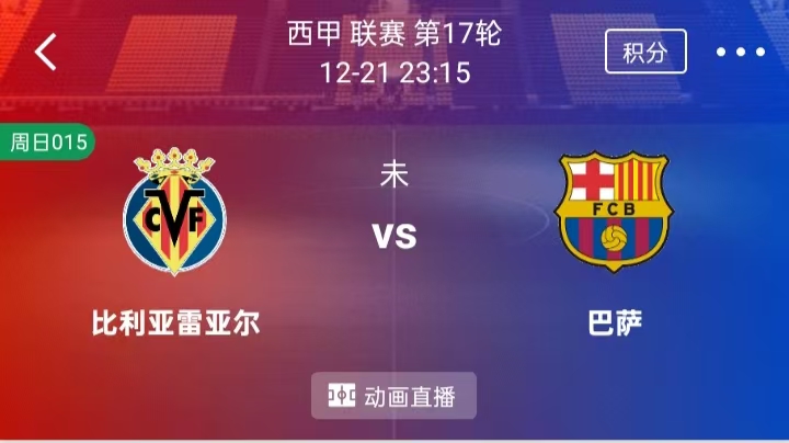 周日 015 西甲:比利亚雷亚尔VS巴塞罗那
