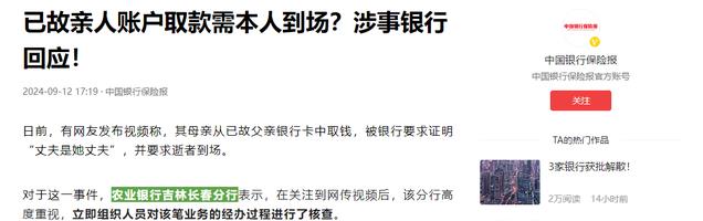 《已故亲人账户取款需本人到场?涉事银行回应!》