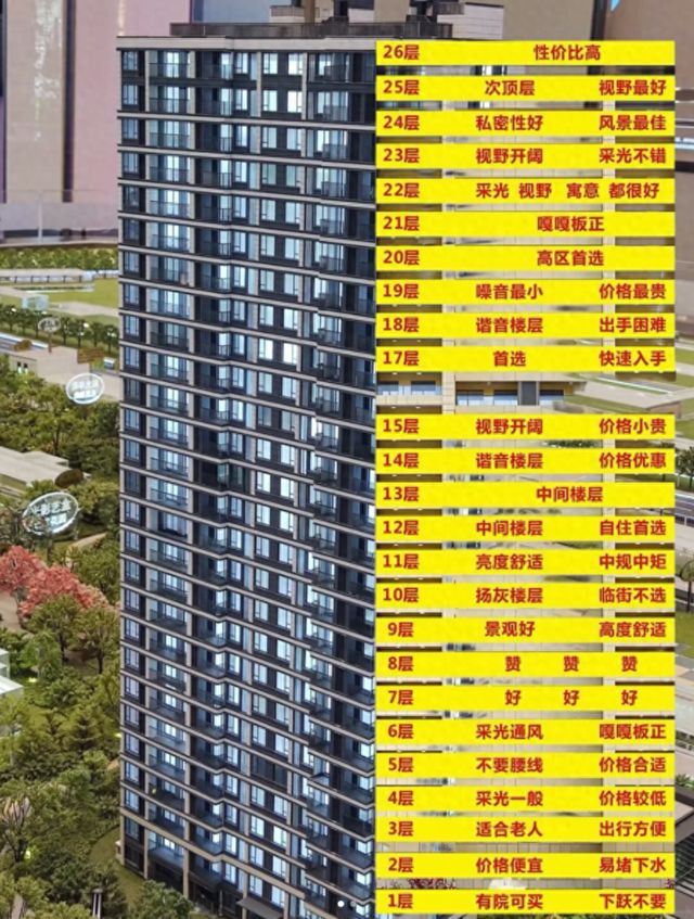 这些楼层,在空气质量、心理舒适度和出行便利性之间,取得了很好的平衡,自然也成了大家眼里的黄金楼层。