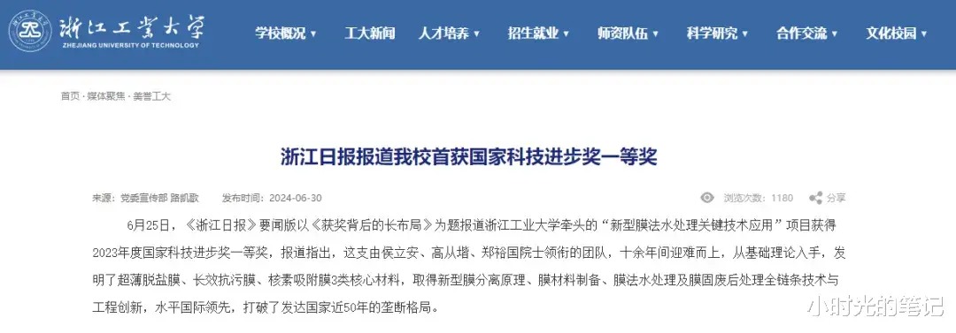 大成果:2024年6月,浙江工业大学牵头的“新型膜法水处理关键技术及应用”项目,直接拿下了国家科技进步一等奖。这可是“国家三大奖”之一,含金量相当高,能拿到这个奖,说明学校的科研能力已经达到了国家级水准。