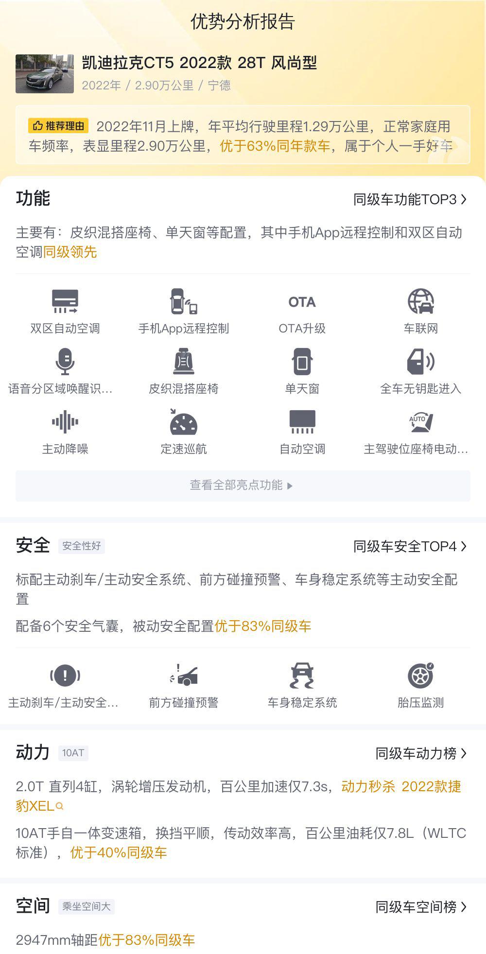 首先,我们得承认,二手车市场鱼龙混杂,一不小心就可能踩坑。但这辆CT5不同,它拥有完整的检测报告,A级车况,仅行驶2.9万公里,无过户记录,近乎准新车的状态,大大降低了购买风险。原车价27.97万,如今不到一半的价格就能入手,这难道不是一种极致的性价比?当然,价格只是其中一个方面,更重要的是,它能带给你什么。